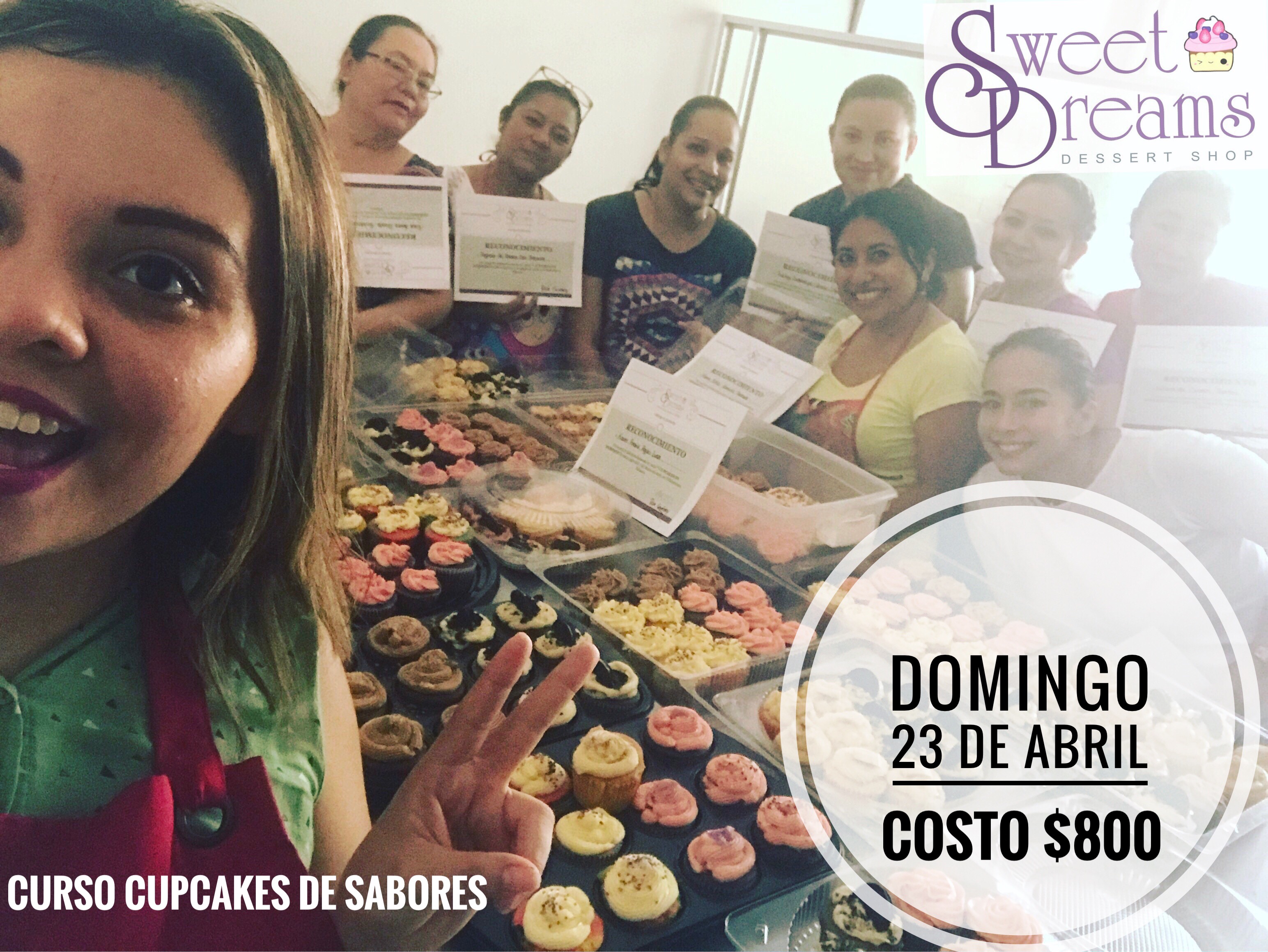 El curso es el domingo 23 de Abril de 9am a 2pm. Incluye todo el material y cada alumno se lleva 30 cupcakes.